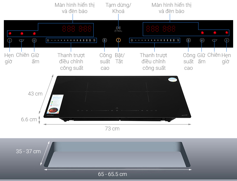 - Bếp từ đôi trang bị AI Inverter tiết kiệm điện năng hiệu quả.