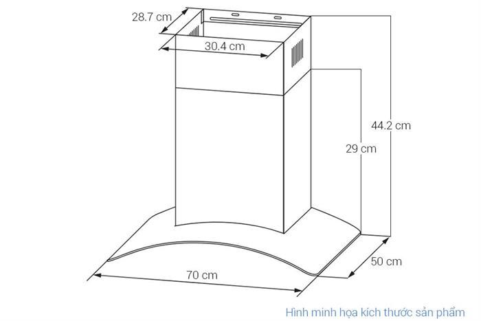 - Máy hút mùi áp tường kính cong tinh tế.
