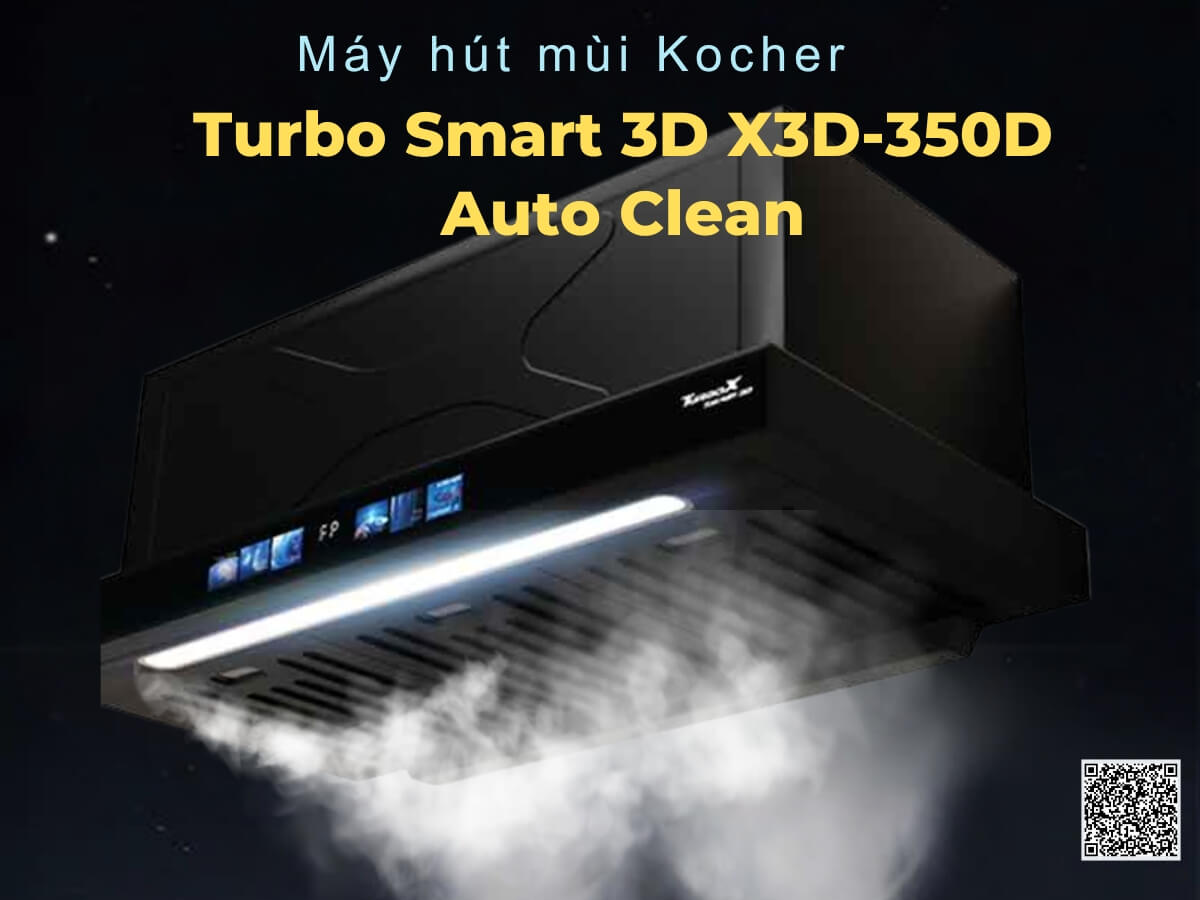 Máy hút mùi Kocher Turbo Smart 3D X3D-350D Auto Clean – Nâng cấp sấy vệ sinh động cơ thông minh